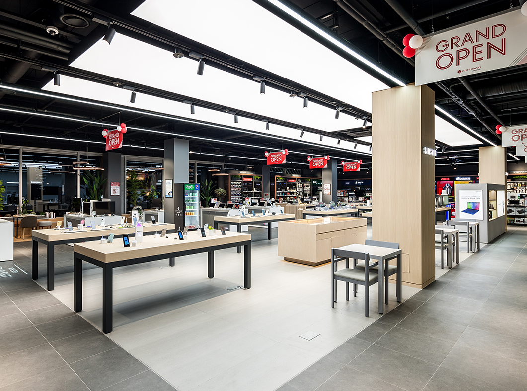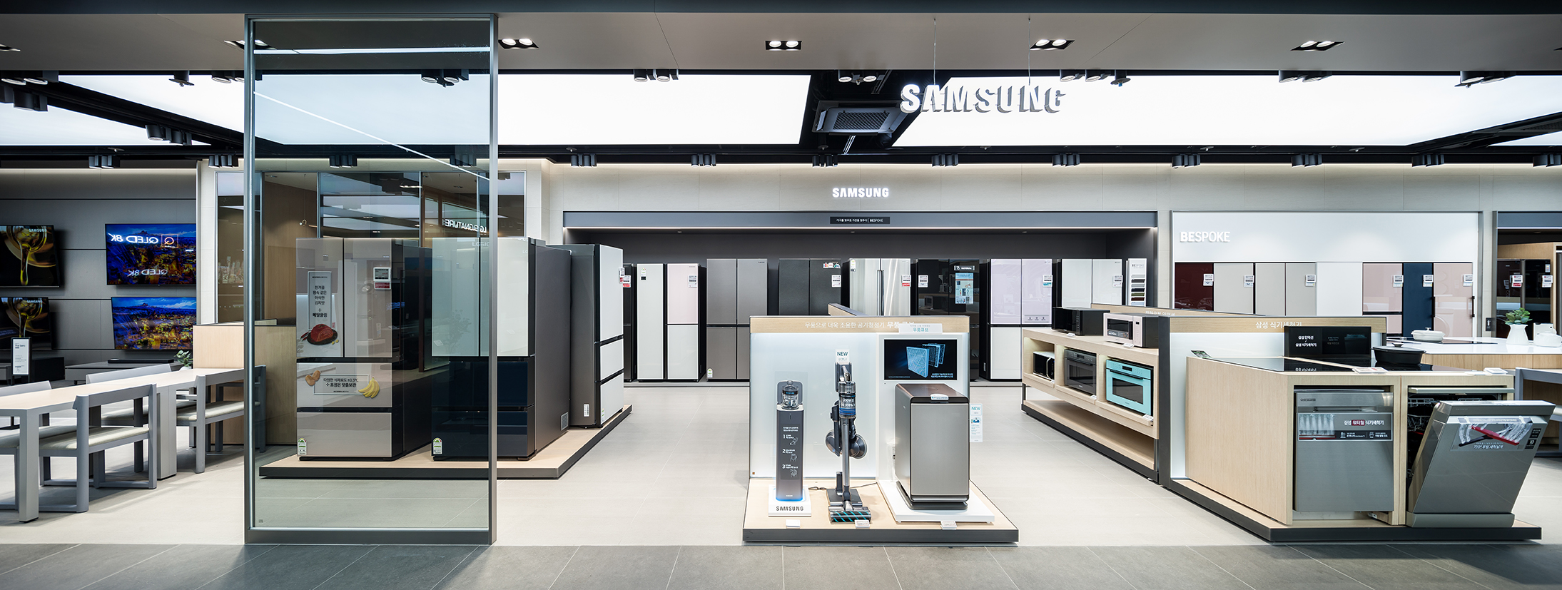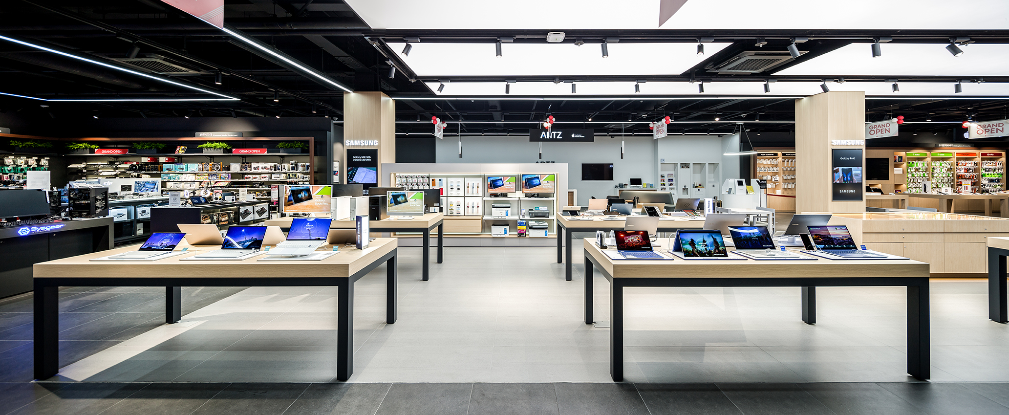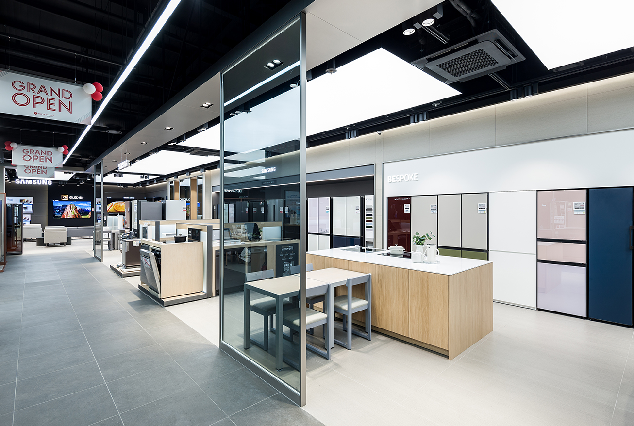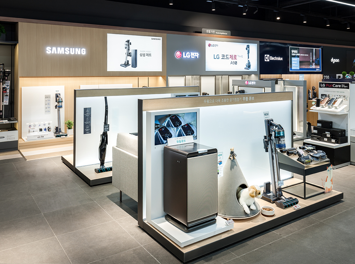 본 매장은 하이마트 메가스토어로 4층 대형가전, 3층 소형가전, 2층 IT/모바일 매장 설계 및 현장 시공 진행하였습니다.